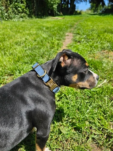 Nos créations, conçues avec soin à partir de matières nobles, reflètent le goût du propriétaire tout en sublimant la prestance naturelle du chien.